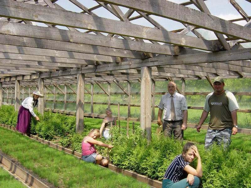 На редакционной машине вместе с Федоровым подъезжаем к небольшим деревянным воротам. Прямо за ними раскинулись красивейшие плантации: слева произрастают зелень и пряные культуры, справа расположился учебно-опытный участок с пятипольным севооборотом, неподалеку виднеются шикарные западные туи, за ними – небольшой домик, искусственный пруд, просторные теплицы и парники. Красота, да и только!