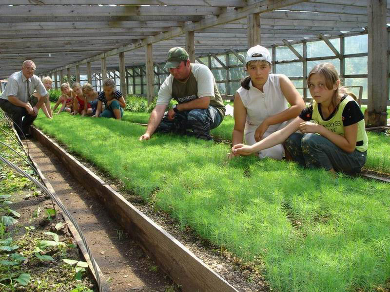 Тимофей Борисович Котков – педагог дополнительного образования мстерского ЦВР. Так получилось, что его увлечение удачно совпало с работой: с детства он занимается выращиванием овощей, деревьев и цветов. Сейчас домашняя коллекция Коткова насчитывает 150 сортов гладиолусов и 27 сортов тюльпанов! В Центре он курирует выращивание лесных пород деревьев. Для Вязниковского сельлесхоза вместе с детьми в теплице на 400 кв. м. выращивает сеянцы сосны. За год - 400 тысяч саженцев. Здесь же из маленьких семечек ребята выращивают туи западные, все они предназначены для озеленения Центра, вязниковских школ, остается еще немного на продажу. Кстати, в прошлом году Центр безвозмездно передал во Владимир около 1 тыс. двухлетних сеянцев туи западной, за что получил благодарственное письмо от Департамента природопользования.