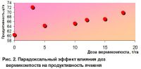 Такое явление, когда обнаруживается сильное воздействие при малых дозах, которое утрачивается при средних и опять восстанавливается при больших дозах, в биофизике называют парадоксальным эффектом. В этой связи с вермикомпостом могут быть связаны перспективы возможности оказывать управляющее воздействие на агроэкологические системы.